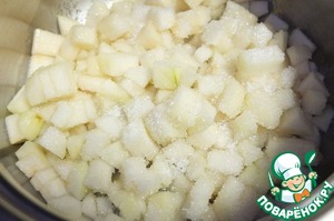 Груши очищаем от кожицы и нарезаем небольшими кубиками.