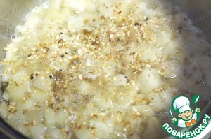 Пшено заливаем холодной водой и варим до полного впитывания воды, минут 15-20.