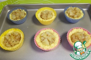 Достаем корзиночки из духовки, наполняем кусочками груши