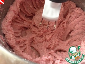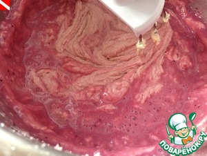 Добавить половину смеси из молока, ягодного соуса и белков. Увеличить скорость и размешивать до однородного и воздушного состояния (около минуты).
