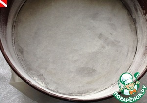 Две формы, диаметром 23 см, застелить пергаментной бумагой, смазать сливочным маслом и присыпать мукой.