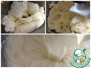 В чаше миксера, той же насадкой для жидкого теста (как она, кстати, называется? Встречала как-то, что ее именуют "гитарой", но моя вряд ли похожа на гитару:) взбиваем в течение 2-3 минут размягченное сливочное масло и мягкий сыр. Добавляем расплавленный шоколад, мед и бренди, взбиваем до однородности. Готовый крем достаточно жидкий, поэтому поставим его в холодильник до загустения минут на 30 - не дольше!, в течение которых, крем можно пару раз помешать.