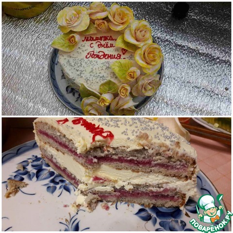 [+5]Коржи очень сладкие, но очень удачно дополняются клюквенной пропиткой. Крем вообще шедевр. Делала его уже несколько раз для других тортов.