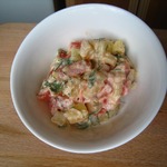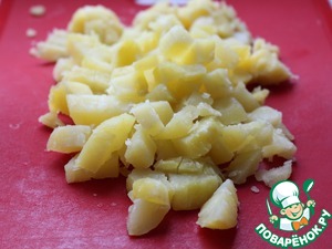 Картофель отварить в мундире, почистить и нарезать кубиками.
