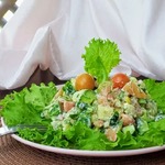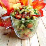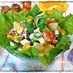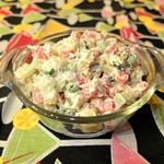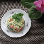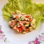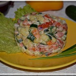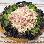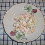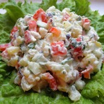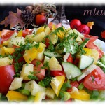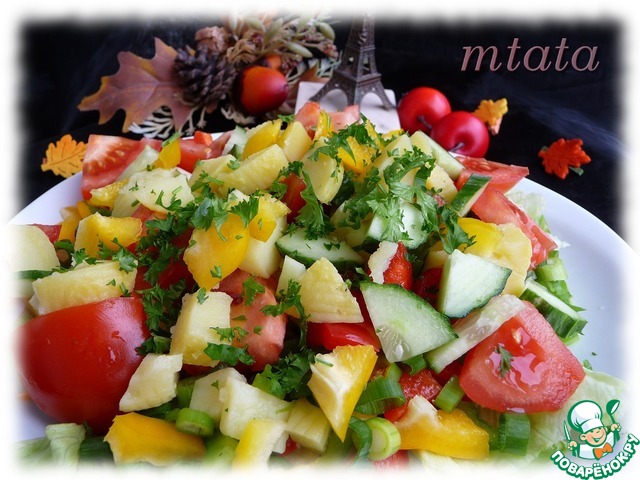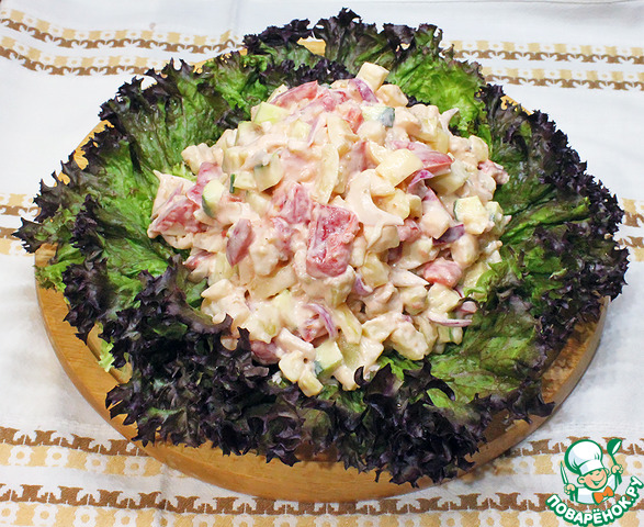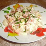 Этим рецептом поделилась со мной одна знакомая француженка из Эльзаса. Она утверждает, что такой салат очень распространен в этом регионе Франции. Что я могу сказать? Он необыкновенно вкусный, нежный, яркий и красочный. Кроме того, он готовится очень быстро и великолепно подойдет для уютного, домашнего обеда или ужина.