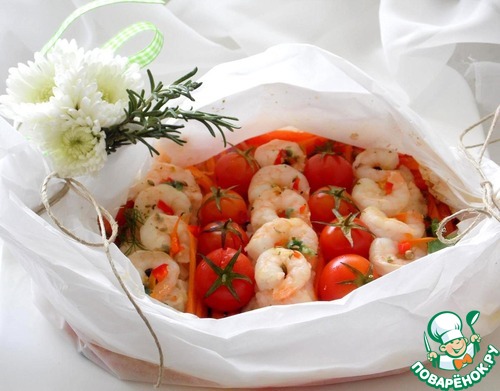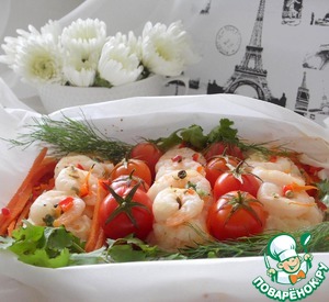 Рецепт «Папийот из рыбы и креветок с овощами»: