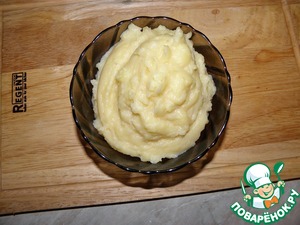 Начнем с гарнира: Сделать картофельное пюре ( я делаю примерно 600г картошки, 60-70мл молока, масло, 1 яйцо) пюре может быть по любимому рецепту, главное чтоб было не жидким, и обязательно добавить 1 сырое яйцо.