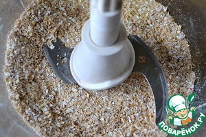 В чаше миксера взбиваем все составляющие посыпки - овсяные хлопья, муку, сахар, мед, пряности.