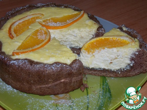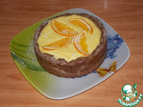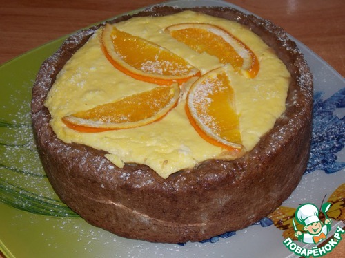 Сверху разложить дольки апельсинов. Выпечь в разогретой духовке при 180С 40-50 минут.
