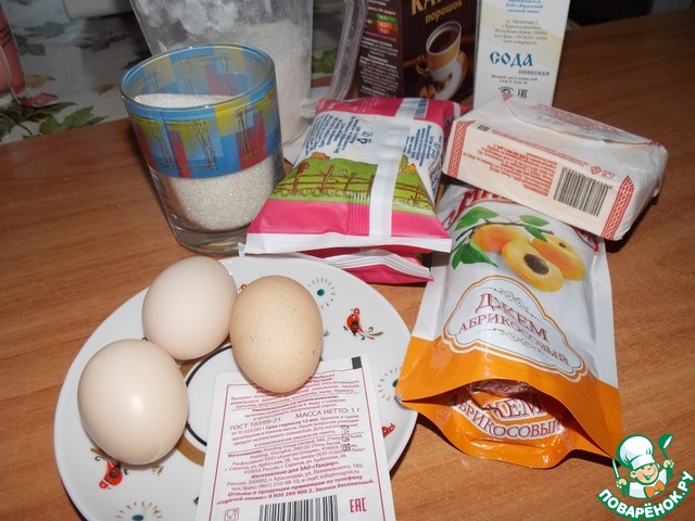 Ингредиенты для «Шоколадный пирог с творогом и джемом»: