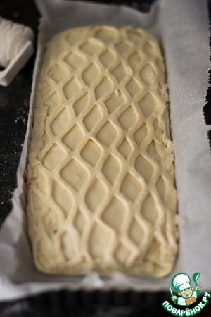 Отрезать от раскатанного теста кусок размером с форму и накрыть слойку. Хорошенько скрепить края.