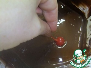 Окунуть вишню, держа за плодоножку, в растопленный шоколад и