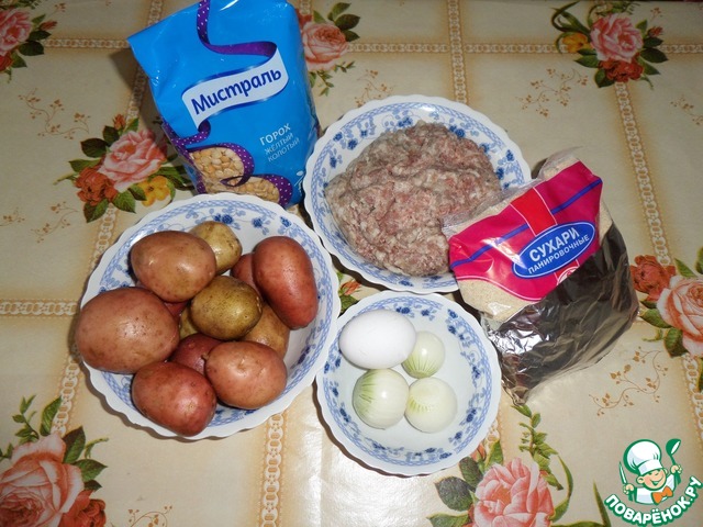 Ингредиенты для «Горохово-картофельный рулет с мясом»: