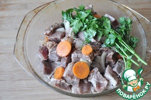 Для приготовления этого блюда мясо рекомендуется мариновать заранее.