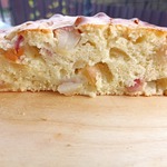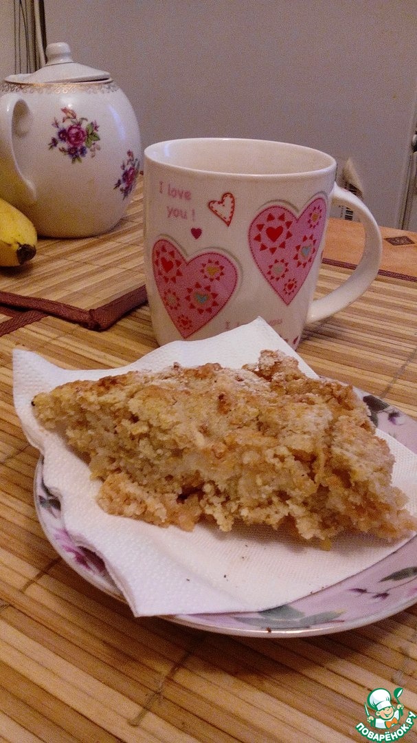 Натертое яблоко снова перемешиваю, т. к. на дне образуется сок, 1/2 часть равномерно распределяю по сухому слою в форме. Автор настоятельно рекомендовала не прижимать яблочный слой ко дну формы. Я придерживалась этого совета и не пожалела, т. к. это придало нежную структуру выпечке.