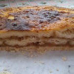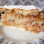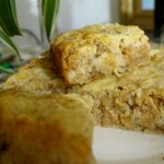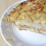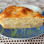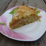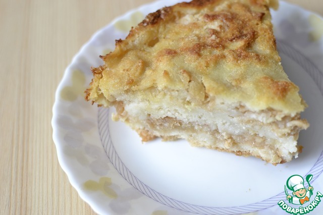 Стараюсь равномерно распределить заливку по верхнему слою пирога. В зависимости от сорта яблок, яблочный слой может иметь разную консистенцию. Если он имеет более рыхлую структуру, то заливка не закроет пирог полностью, что видно на моем фото (если бы я прижимала яблочный слой к сухому, то заливка покрыла бы пирог полностью, но в этом случае пирог не получился бы таким нежным). Можно нижний слой чуть полить заливкой, чтобы он не получился сухим, или с помощью тонкого деревянного шампура сделать проколы в пироге до дна.