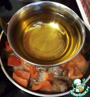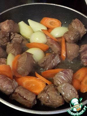 Говядину нарежьте кубиками примерно 3*3 см и обжарьте на разогретом масле