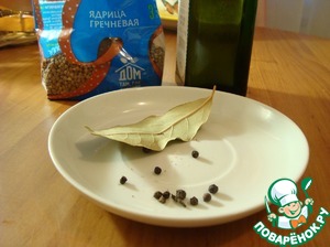 Кладём перец горошком, лавровый лист и по желанию добавляем ещё немного масла оливкового, пробуем на соль.