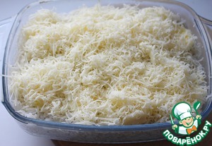 • Посолить и поперчить. Посыпать блюдо натертым сыром. На яйца следует красть в 2 раза больше сыра. Полить сливочным маслом.