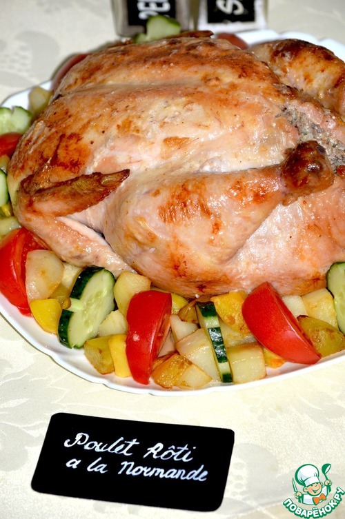 Poulet Roti a la Normande это курица с начинкой из потрохов с пряными травами и сливочным соусом. Именно ее готовила Джули Пауэлл в фильме "Джули и Джулия готовим счастье по рецепту".