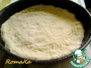 Раскатываем его по форме (у меня это любимая сковорода для духовки), формируя бортики