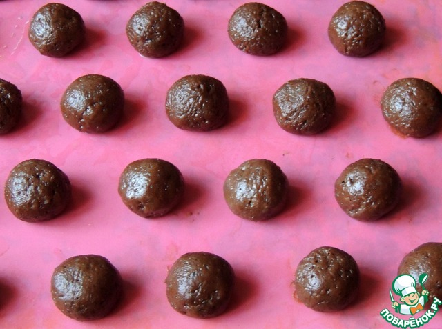 Влажными руками сформировать из теста небольшие шарики (размером с грецкий орех), выложить их на пергамент или силиконовый коврик.
