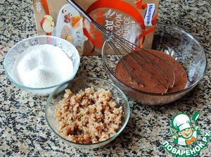 Сахар взбить с яйцом и растопленным медом, добавить пряности, какао, натертый на мелкой терке имбирь