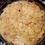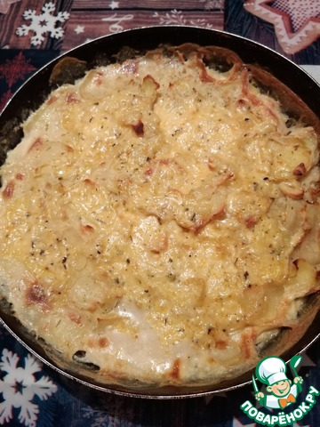 Поставить гратен в разогретую духовку до 170-180С. Выпекать 30- 40 минут. Жидкость чуть выкипит и сгустится крахмалом. Картошка должна растаять при томлении.