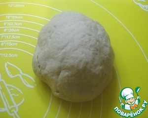 Начинаем постепенно добавлять муку, замешивая тесто до гладкого состояния. Муки может понадобиться чуть больше или меньше. Тесто хорошо вымешиваем, чтобы получился гладкий, мягкий колобок.