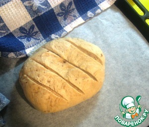 Формируем хлебушек желаемой формы, делаем надрезы острым ножом, выкладываем на противень, оставляем еще на 30 минут для подъёма, накрыв салфеткой.
