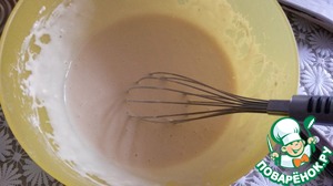Тесто должно получится как на оладьи. В готовое тесто добавляем гашённую соду. И оставить тесто на 10 мин.