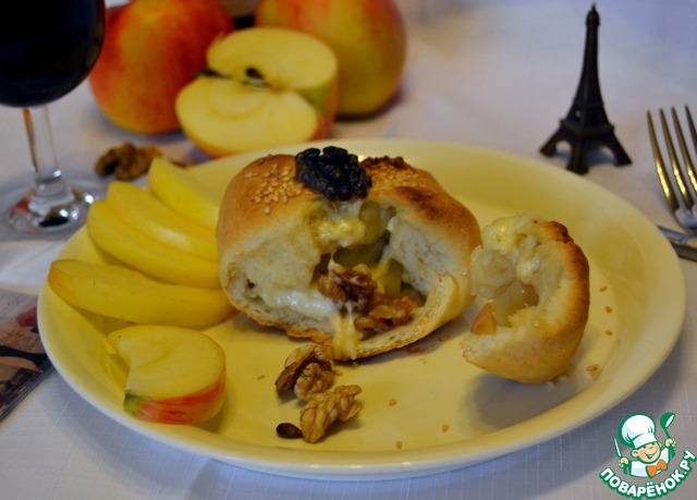 Этот рецепт относится к категории " Сюрприз на тарелке", потому что никто не знает, что там внутри. Разломите булочку... Вкус растопленного сыра смешается с ароматом яблока и орехов. Можно с чаем, а можно и под бокал вина!
