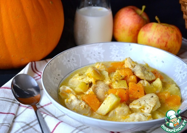 Рецепт «Куриное рагу с тыквой и яблоками»: