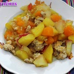Вкусное и такое необычное блюдо! Все ингредиенты прекрасно сочетаются! Даже яблоко вписывается! Я использовала куриный фарш. Всем рекомендую попробовать этот рецепт!