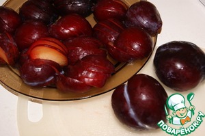 Сливу нарезать на кусочки, оставив 2 шт. целыми. -