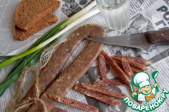 Многие знают и любят эту вкусную колбасу. У нас в семье она одна из самых любимых. Теперь мы делаем еe сами. Очень удобна для домашнего изготовления - не требует никаких специальных приспособлений для копчения и просушки. Попробуйте и вы.