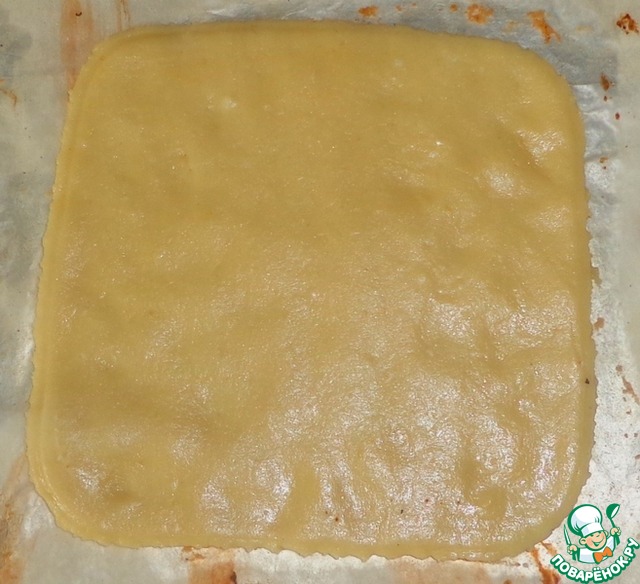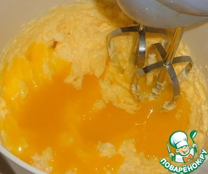 Добавляем муку и разрыхлитель теста. Замесить эластичное тесто. Разделить на 4 равные части, сформировать шарики и убрать в холодильник.
