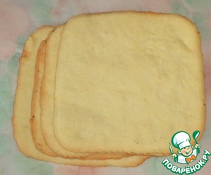 Коржи выпекаем вместе с обрезками 10-12 минут при температуре 180 градусов. Коржи остудить.