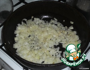 Лук нарезать. Обжарить в сковороде или сразу в кастрюле (если кастрюля с толстым дном).