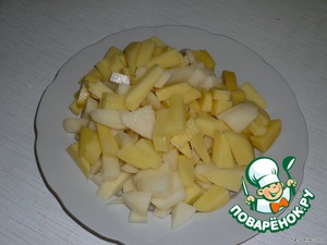 Пока овощи тушатся, подготавливаем картошку. Я нарезала ее брусочками (кому как нравится).