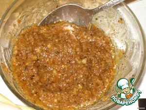 • Для соуса. Яблоко очистить от кожурки и семечек, натереть на мелкой терке, добавить все ингредиенты для соуса, перемешать.