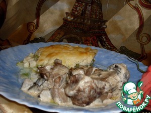Выкладываем грибы в жаровню с телятиной, накрываем крышкой и ставим в предварительно нагретую до 200 град. духовку на 1 час или даже чуть больше (в рецепте указано 20 минут, но тогда мясо получается жесткое, а за час - час-двадцать доходит до нужной кондиции. Хотя, может, мне просто такое мясо попалось)