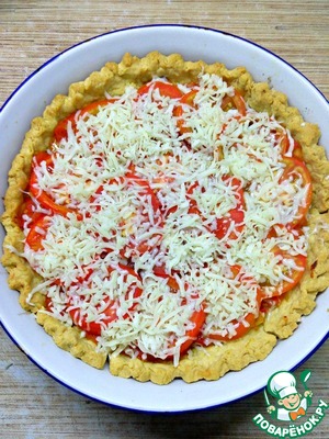 Распределить тесто по форме, формируя борта. У меня форма 26 см в диаметре. Многократно наколоть. Поставить в разогретую до 200С духовку на 15-20 мин, запекаться до золотистого цвета.