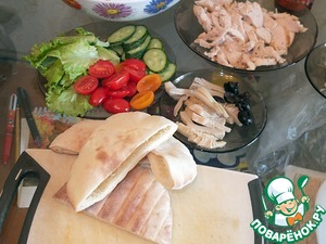 Или мой вариант под пейсаховку: курица гриль, маринованные грибы, маринованный лук, томаты, салат, свежие огурцы и т. д.