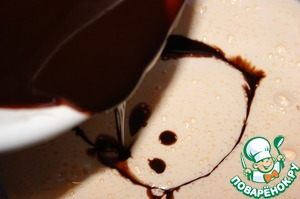 Постепенно ввести шоколадную смесь в взбитую яичную и перемешать лопаточкой.