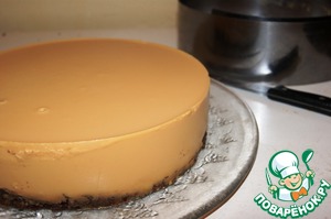 Чтобы легко освободить готовый торт от кольца, обдуйте кольцо феном. Поместить торт в холодильник.