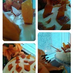 Поломать карамель на произвольные куски, кстати, правильно сваренная карамель, ломается и трещит, как стекло и не липнет к зубам, как жвачка. Украшать торт карамелью следует непосредственно при подаче его на стол, потому что она быстро тает. Украсьте торт так, как вам нравится.