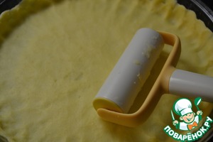 Большую раскатать и выложить на дно формы, формируя