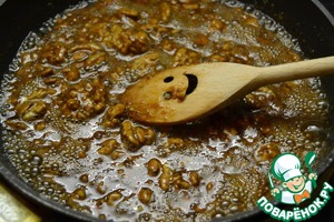 Когда он будет полностью жидкий, добавим орехи.