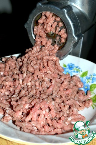 Телятину прокрутить вместе со свежим свиным жиром через мясорубку.